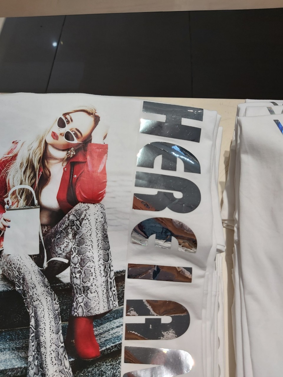 Sản phẩm mới Foil: hàng cao cấp : đặc tính mỏng mềm , sau khi ép bề mặt decal áp sát bề mặt vải , sờ vào cảm tưởng như in trên vải . Màu sắc đẹp , có độ bóng của foil . Dùng làm quần áo thời trang cao cấp .