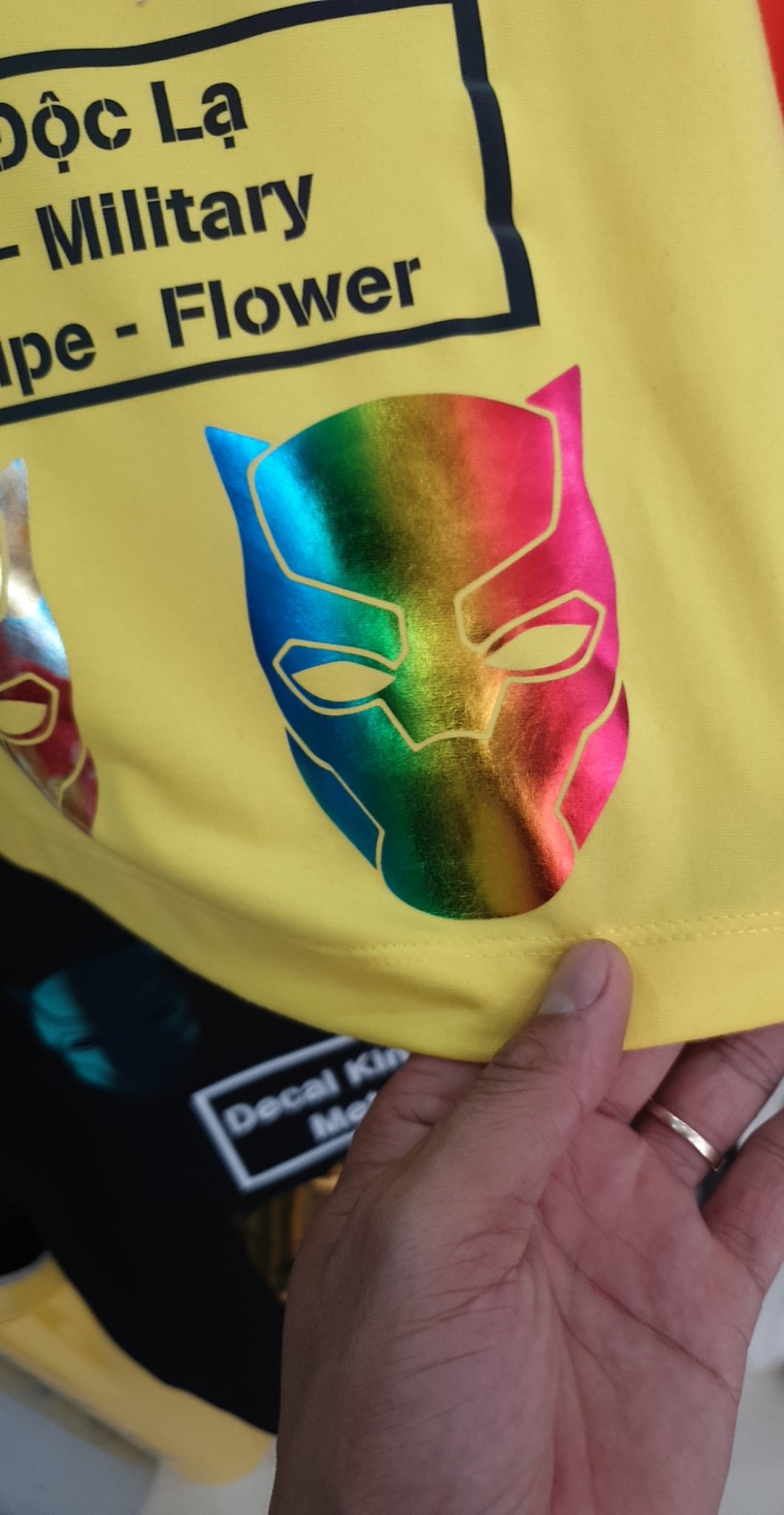 Hiệu ứng kim loại : dùng làm các họa tiết giúp nổi bật chiếc áo thật thời trang và phong cách . Dùng ép trên nón tạo điểm nhấn ấn tượng